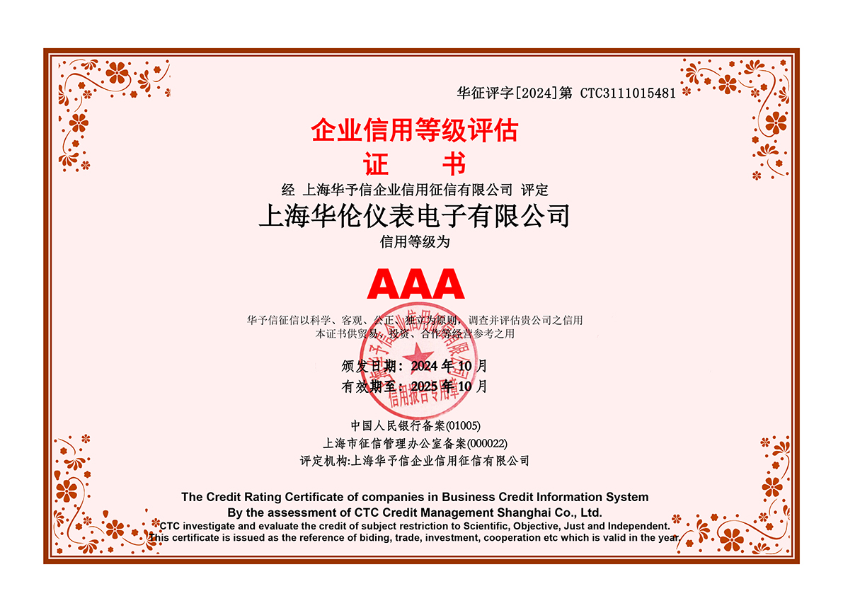 2024年10月份,公司再次获得了AAA级企业信用等级。中国人民银行备案(01005);上海市征信管理办公室备案(000022)